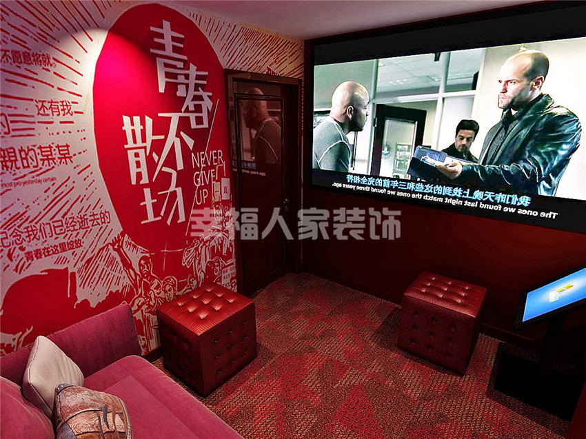 影咖在近几年时下流行的一种娱乐场所,区别于大众影院,它体现的更多是个性化,私属化。不同风格的定位,打造的影咖环境争奇斗艳,本案主要的设计思路不在风格上做巧取,而是以跳色的手法,融合不同的色彩感官,以赤橙黄绿青蓝紫七大主色为基底,丰富空间层次,让色彩与时尚元素结合,通过材质的传递,在娱乐的同时,感受时尚风华的绽放,每个单间都有属于自己的主题故事,让消费者面对自己不同的年龄,不同的文化层次去体验,不同的认知来享受着视听盛宴!